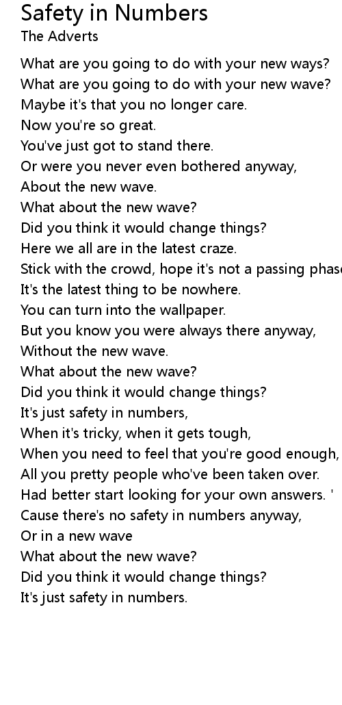 Cause there's no safety in numbers anyway, |