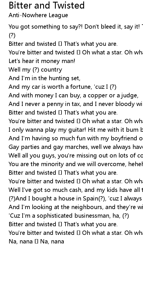 | Bitter and twisted That's what you are. | |