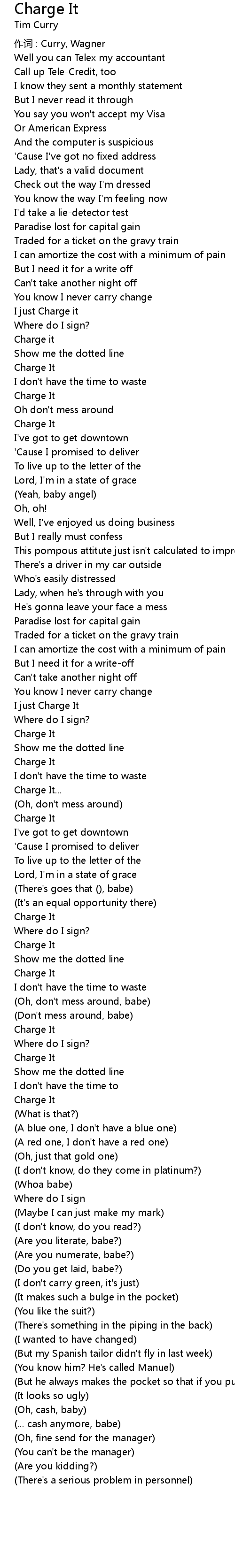 | 作词 : Curry, Wagner | |