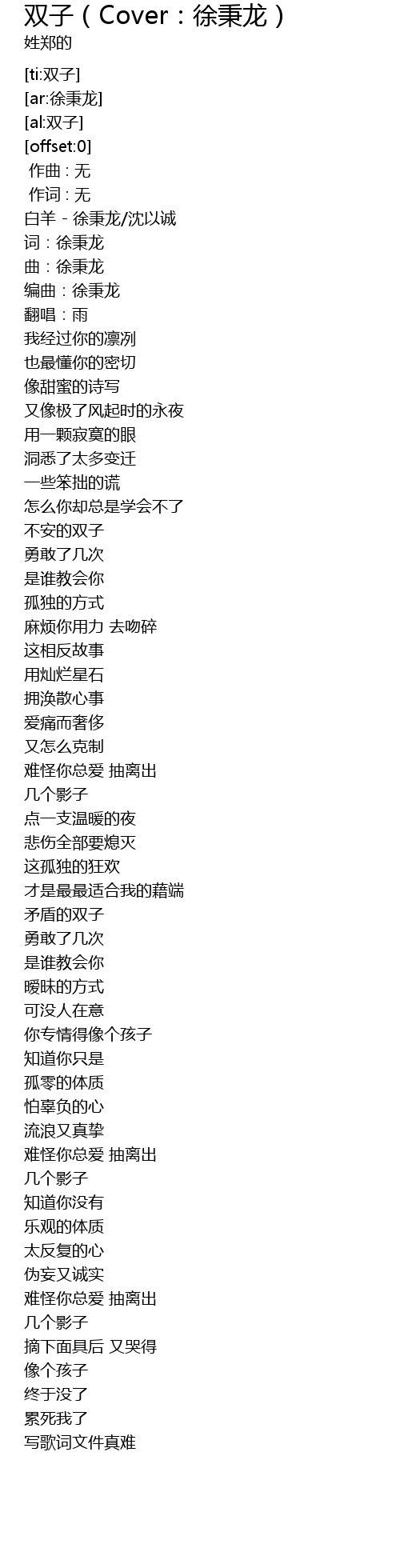 | [00:00.61] | 白羊 - 徐秉龙/沈以诚 |