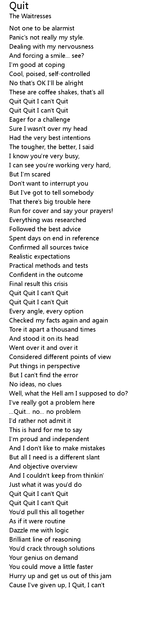 Quit Quit I can't Quit |