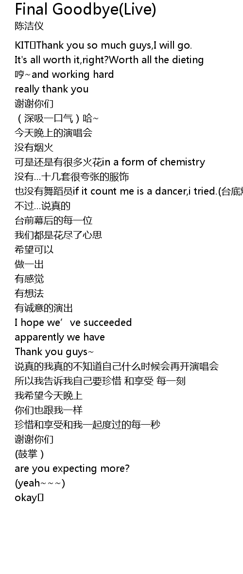 | [01:09.742] | 说真的我真的不知道自己什么时候会再开演唱会 |