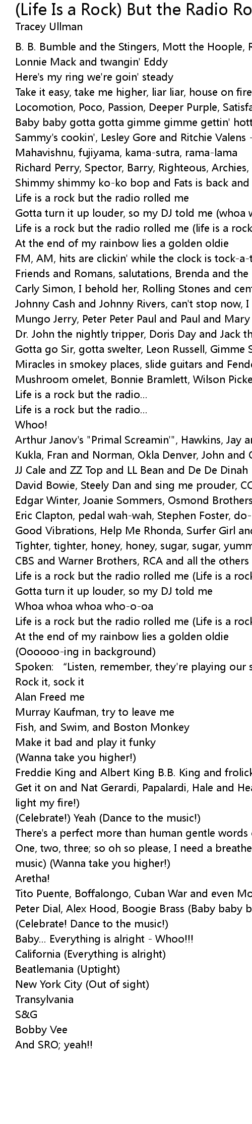 | Life is a rock but the radio rolled me (life is a rock, whoo whoo) | |