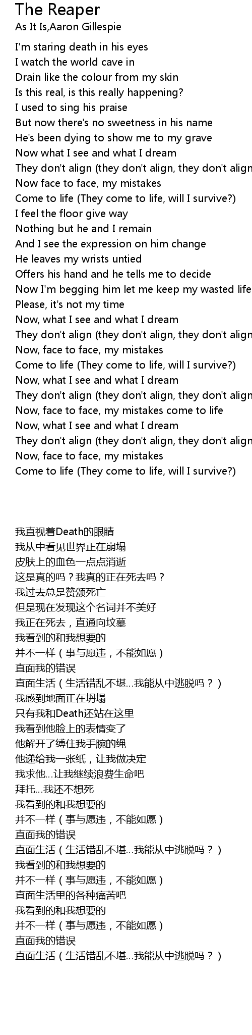 Now I'm begging him let me keep my wasted life |