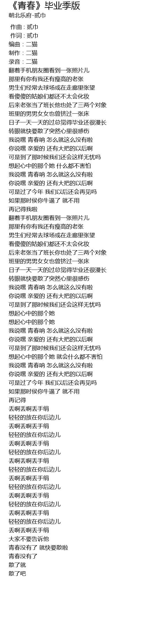 | [03:57.000] | 日子一天一天的过总觉得毕业还很漫长 |