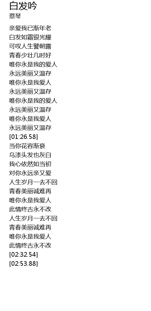 | [02:28.68] | cǐ qíng zhōng gǔ yǒng bù gǎi |