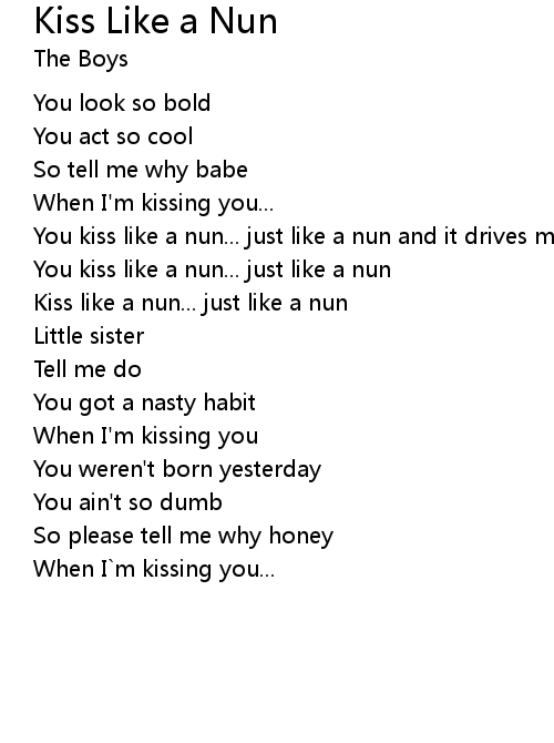 | You kiss like a nun... just like a nun and it drives me crazy | |