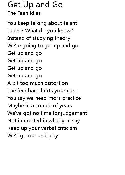 | We're going to get up and go | |