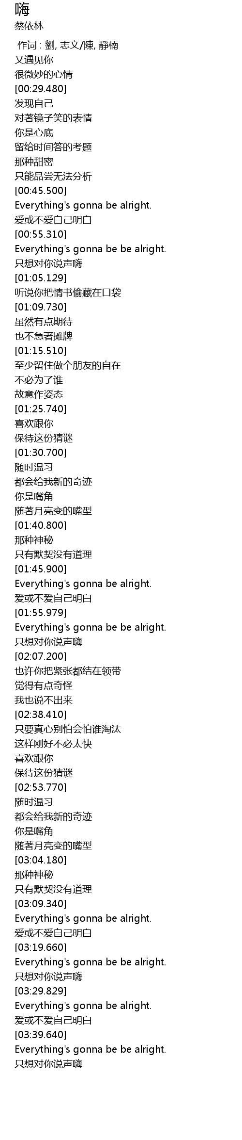 | [02:03.530] | 只想对你说声嗨 |