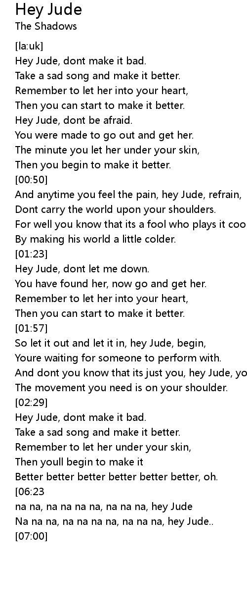 Hey Jude, dont make it bad. |