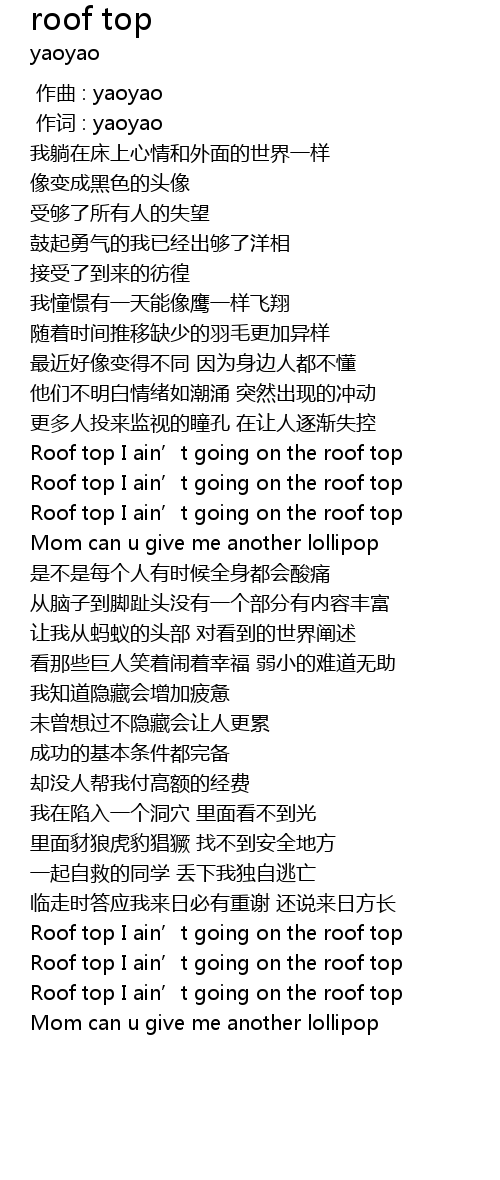 | [00:51.106] | Roof top I ain' t going on the roof top |