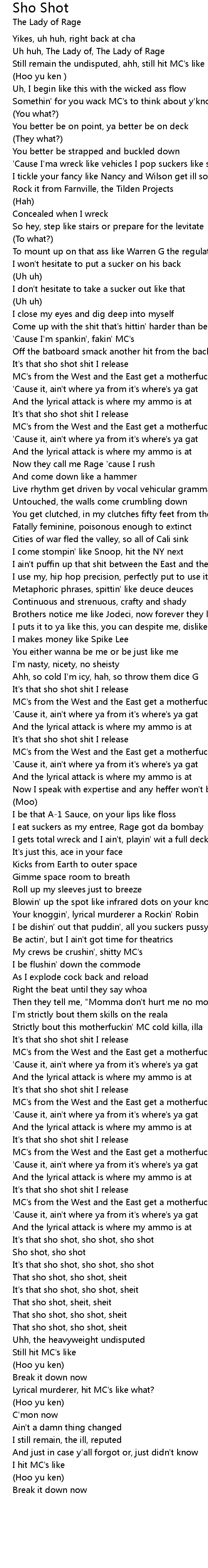 It's that sho shot, sho shot, sheit |