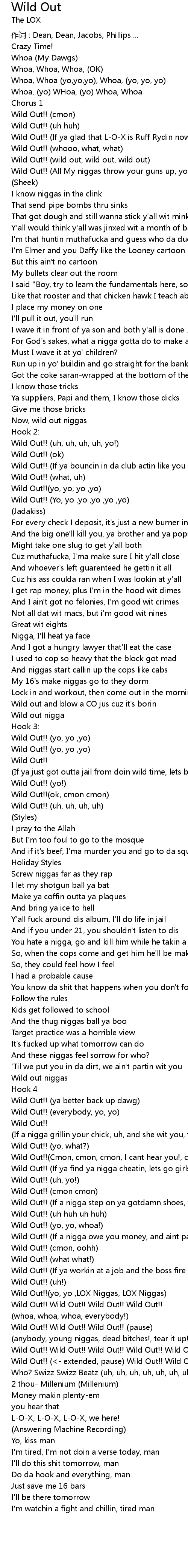 | Wild Out!! yo, yo , LOX Niggas, LOX Niggas | |