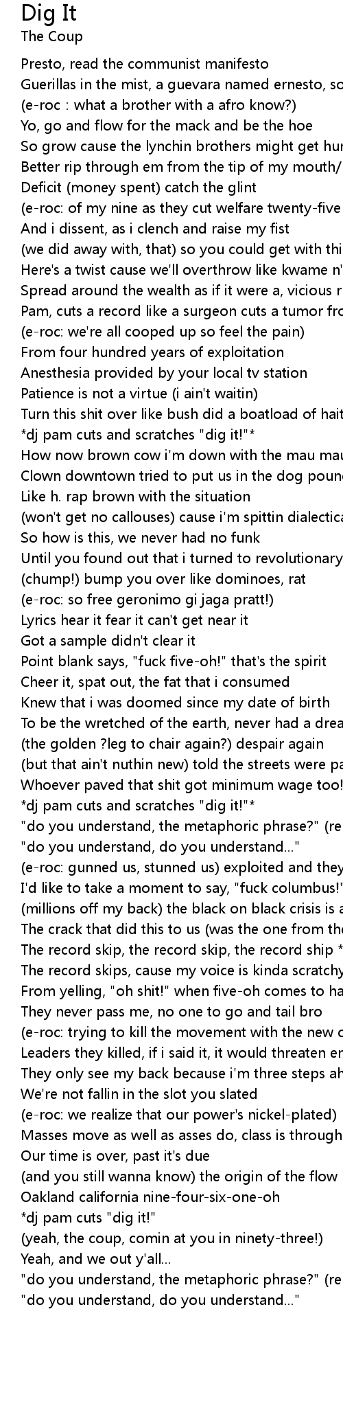 | (yeah, the coup, comin at you in ninety-three!) | |