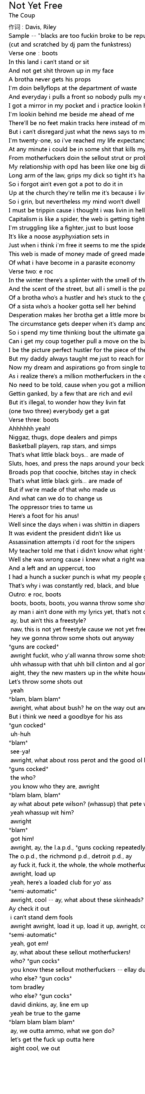 | b ay man i ain' t done with my lyrics yet, that' s not cool | |