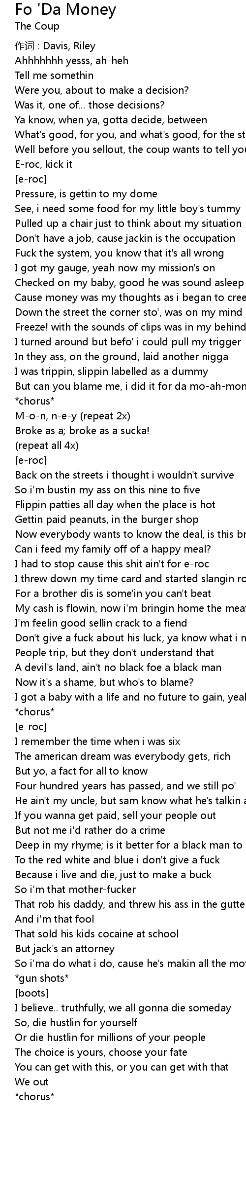 | But can you blame me, i did it for da mo-ah-money | |