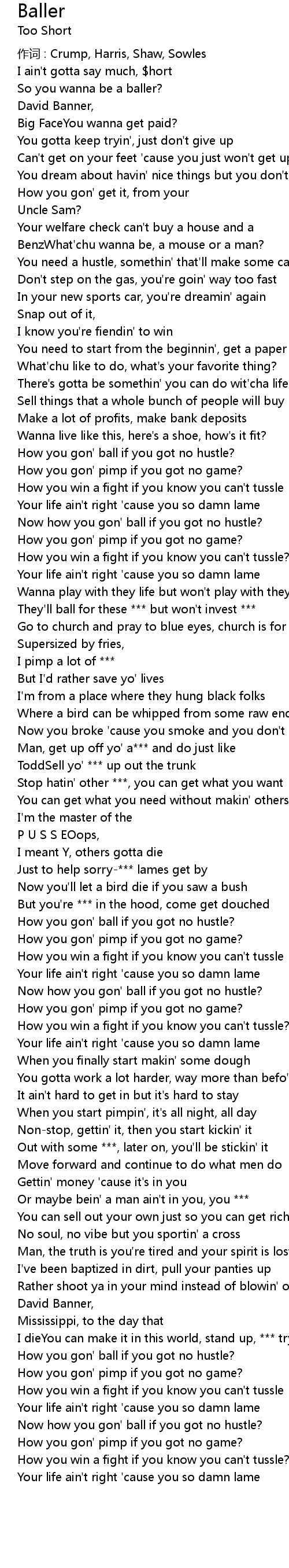 | Now how you gon' ball if you got no hustle? | |
