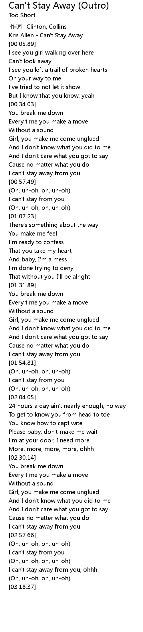 | [00:01.12] | Kris Allen Can' t Stay Away |