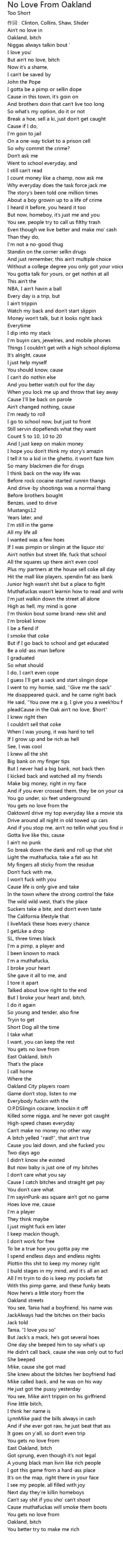 | He said, " You owe me a g, I give you a weekYou fuck up my money, don' t cop no pleadCause in the Oak ain' t no love, hort" | |