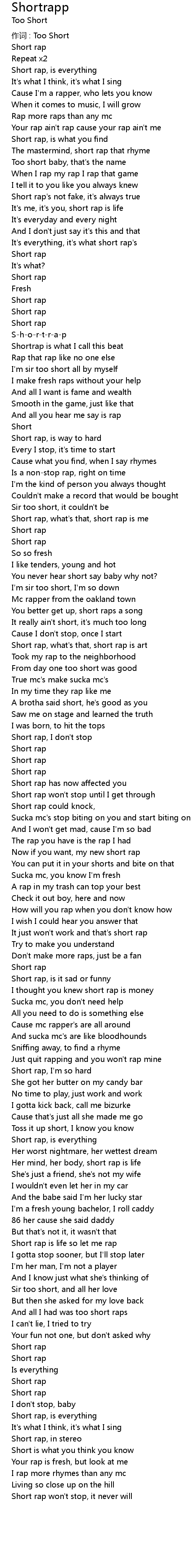 | Short rap, what's that, short rap is me | |