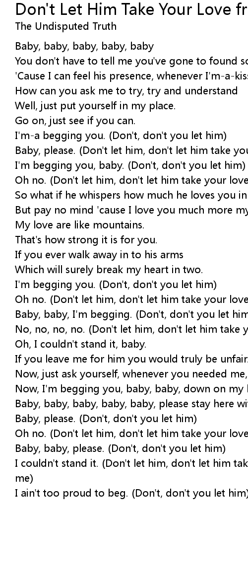 Baby, please. (Don't let him, don't let him take your love from me) |