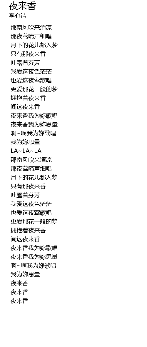 | [00:55.400] | 夜来香我为妳歌唱 |