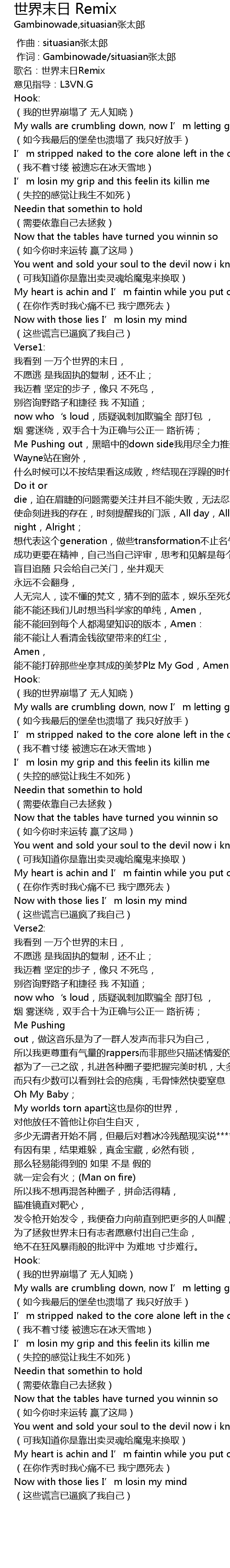 | [00:06.691] | 歌名:世界末日Remix |