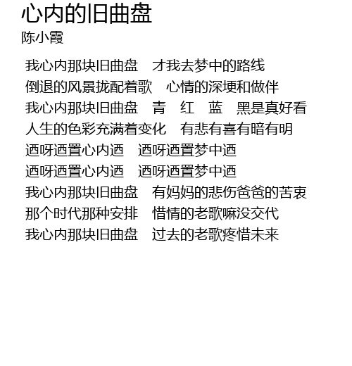 | 我心内那块旧曲盘 过去的老歌疼惜未来 |