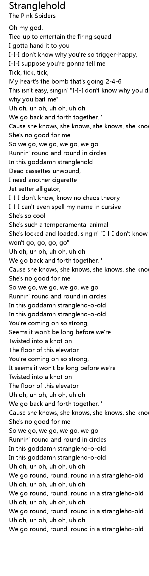 In this goddamn strangleho-o-old |
