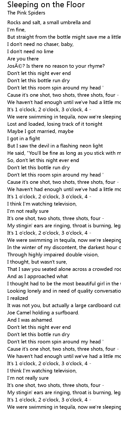 | We were swimming in tequila, now we' re sleeping on the floor |