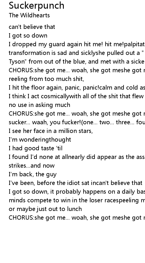 CHORUS:she got me... woah, she got meshe got me... with a suckerpunch |