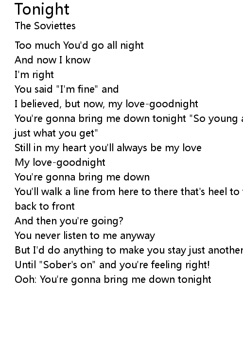 You're gonna bring me down tonight "So young and dumb" they said, and "that's just what you get" |