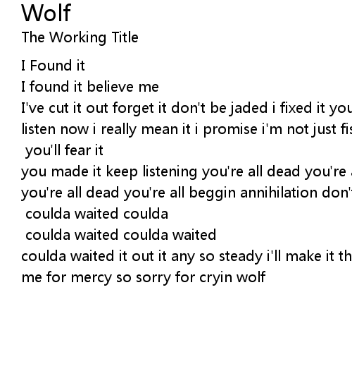 I've cut it out forget it don't be jaded i fixed it you gotta listen gotta listen now i really mean it i promise i'm not just fishin its all comin down i wasn't i wasn't makin it up i'm a faker but i wasnt fakin [x2] you'll fear it you made it keep listening you're all dead you're all dead you're all dead you're all dead you're all beggin annihilation don't listen you'll be dead you'll be dead you'll be dead shoulda shut your mouth [x2] coulda waited coulda waited to figure it out shoulda shut your mouth [x2] coulda waited coulda waited coulda waited it out it any so steady i'll make it the last man alive you'll beg me for mercy so sorry for cryin wolf |