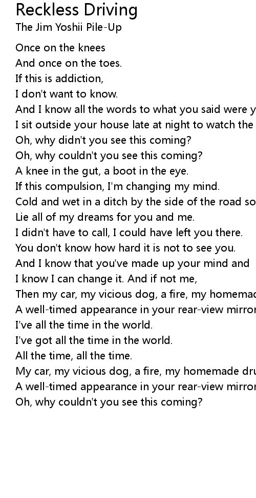 My car, my vicious dog, a fire, my homemade drugs, |