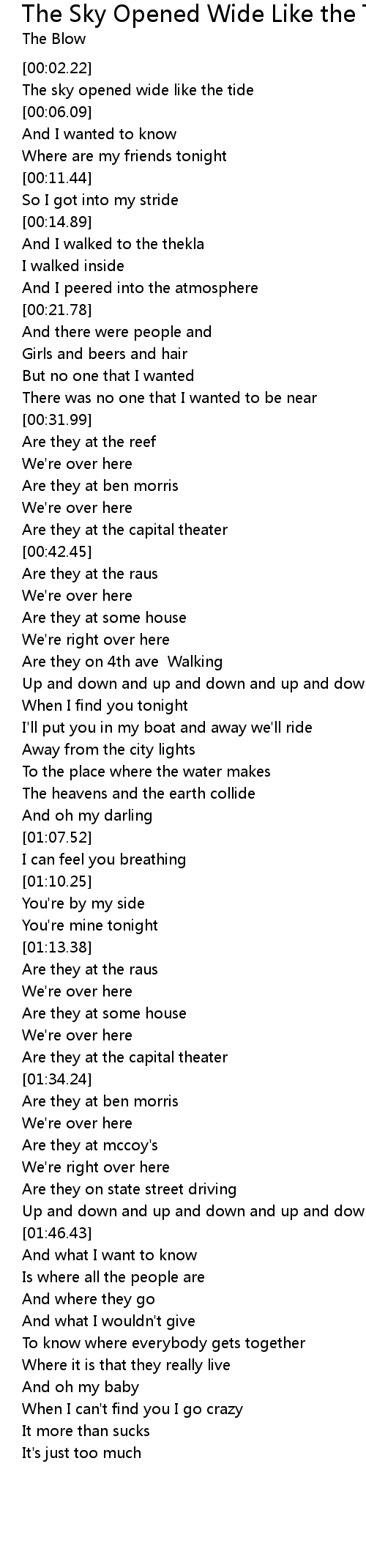 The Sky Opened Wide Like the Tide Lyrics