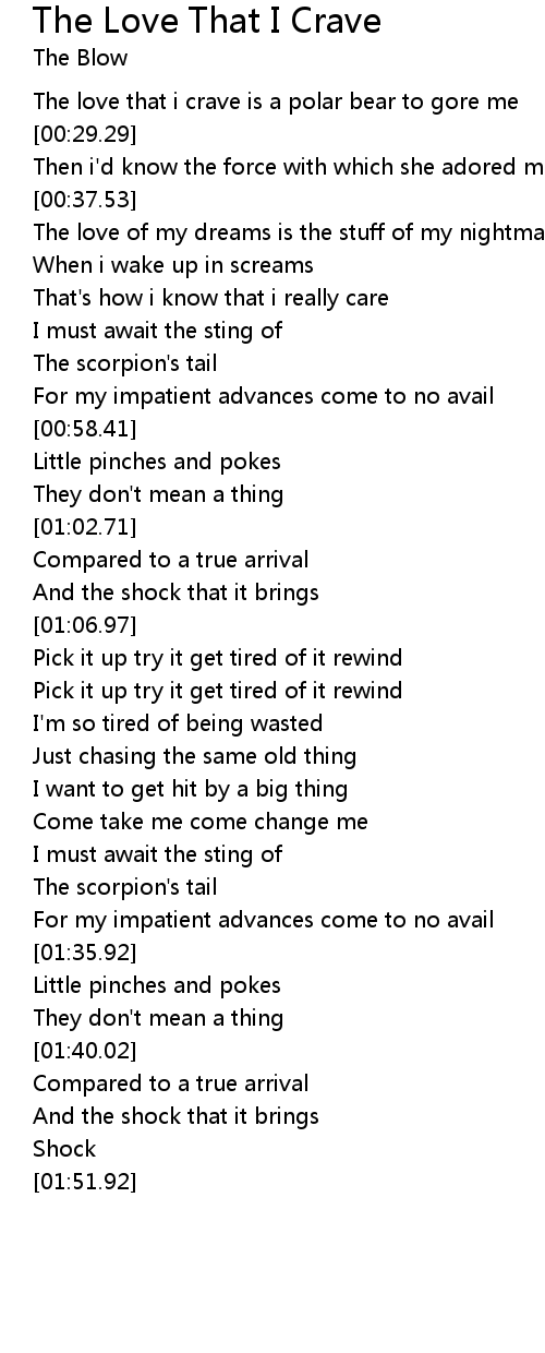 The love that i crave is a polar bear to gore me |