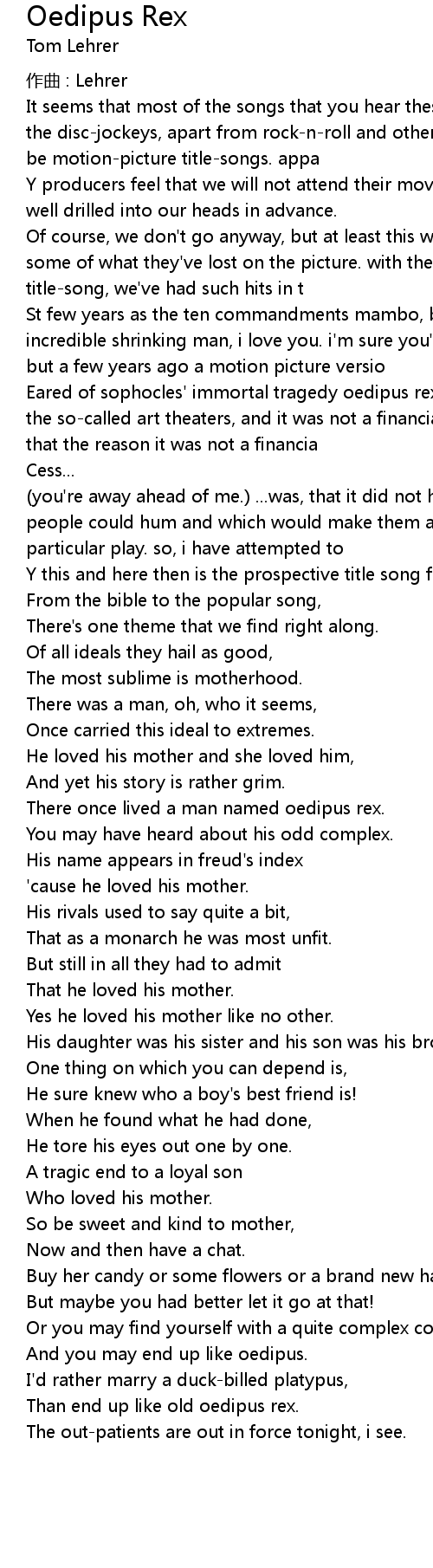 | Y this and here then is the prospective title song from oedipus rex. | |