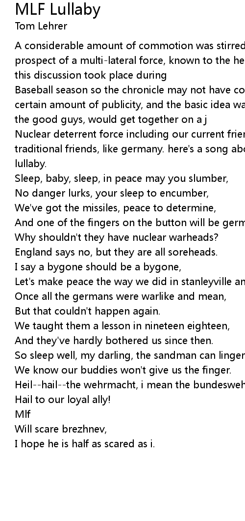 Nuclear deterrent force including our current friends, like france, and our traditional friends, like germany. here's a song about that called the mlf lullaby. |