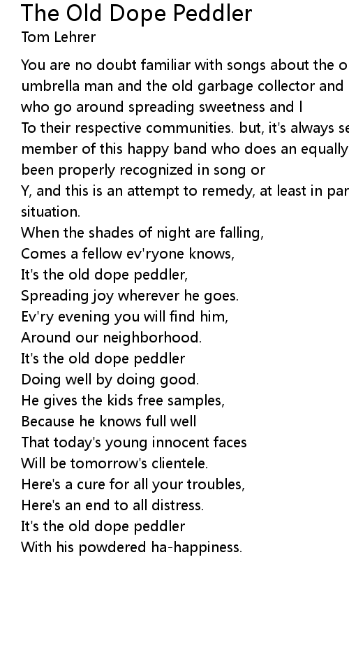 You are no doubt familiar with songs about the old lamplighter and the old umbrella man and the old garbage collector and all these lovable old characters who go around spreading sweetness and l |