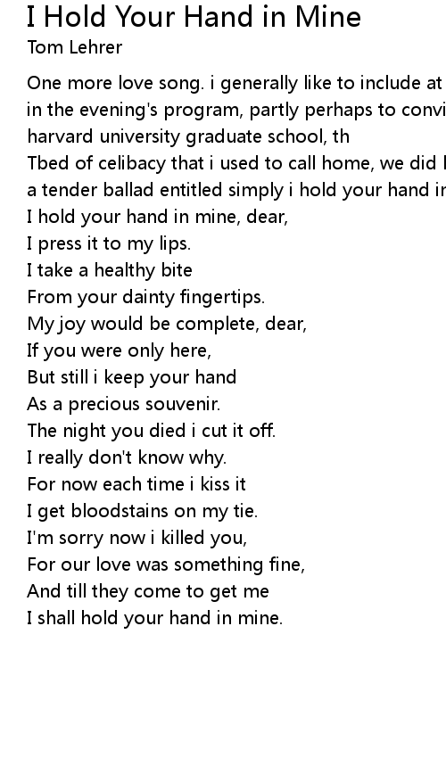 Tbed of celibacy that i used to call home, we did have our moments. this one is a tender ballad entitled simply i hold your hand in mine. |