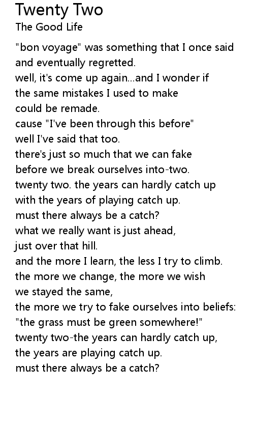 Twenty Two Lyrics