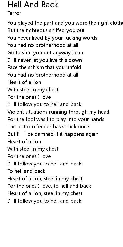| I' ll follow you to hell and back | |