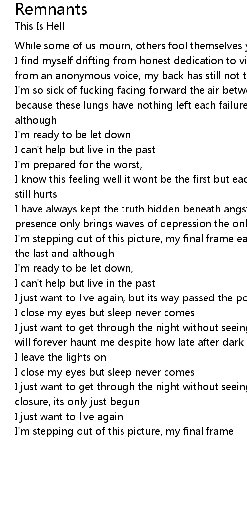I'm so sick of fucking facing forward the air between us will never clear because these lungs have nothing left each failure hurts more than the last and although |