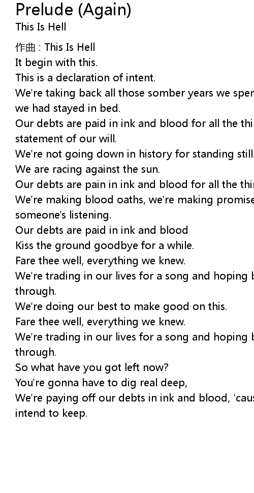 | Our debts are pain in ink and blood for all the things we' ve done | |