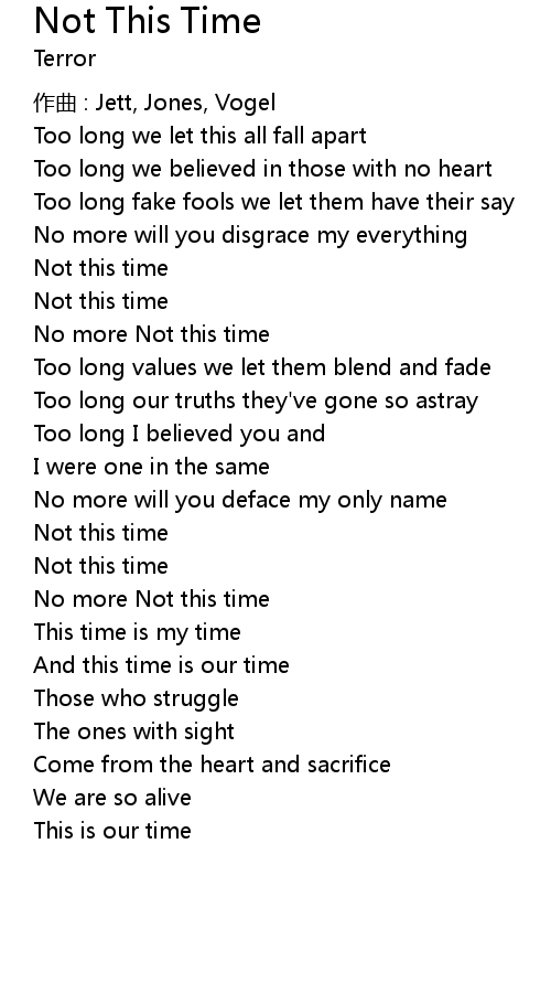 | And this time is our time | |