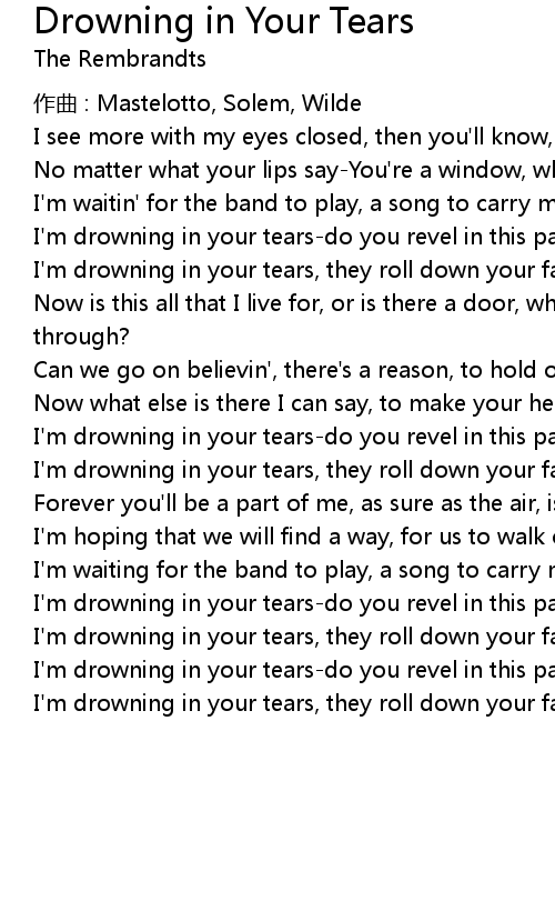 | I' m drowning in your tears, they roll down your face like fallin' rain | |