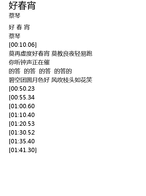 | [00:20.03] | mò zài xū dù hǎo chūn xiāo mò jiào liáng yè qīng yì pǎo |