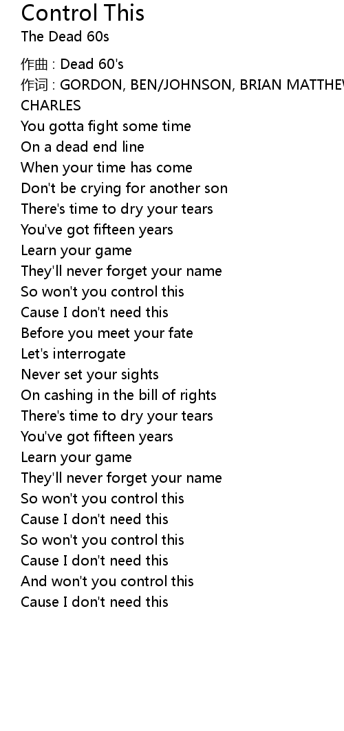 | 作词 : GORDON, BEN/JOHNSON, BRIAN MATTHEW/MCMANAMON, MATTHEW JAMES/TURNER, CHARLES | |