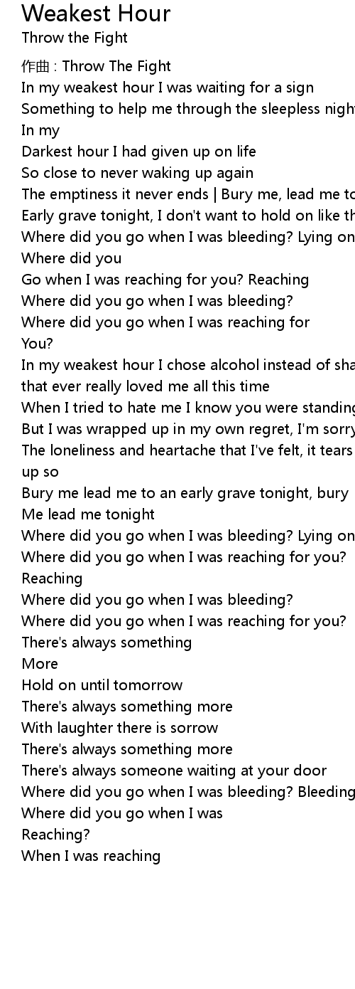 | In my weakest hour I chose alcohol instead of sharing my heart with the only one that ever really loved me all this time | |