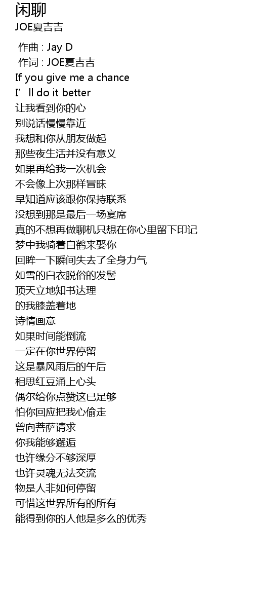 | [00:01.000] | 作词 : JOE夏吉吉 |